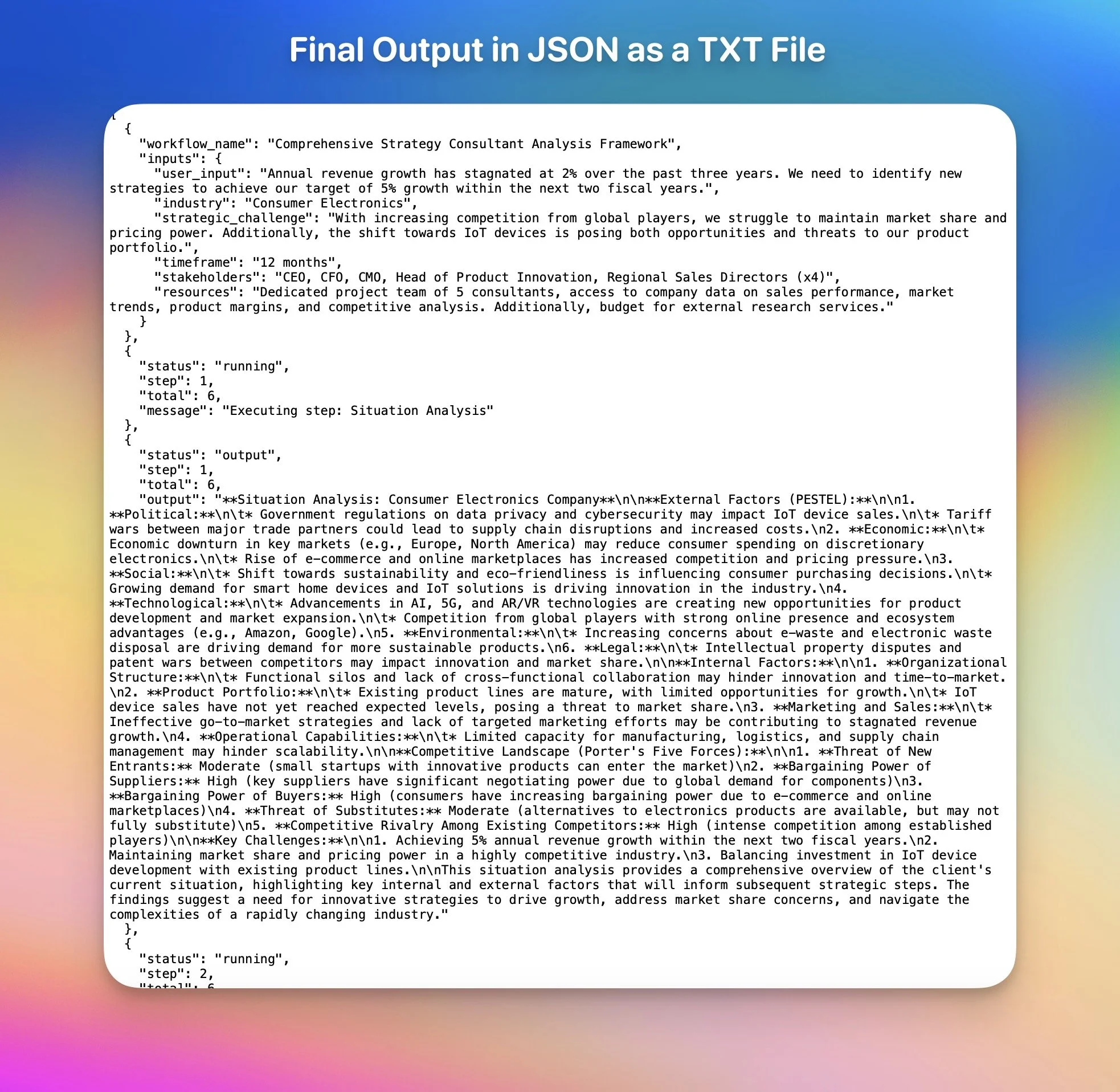 But for now, I’ll wrap up by showing you an output from the strategy consultant workflow.