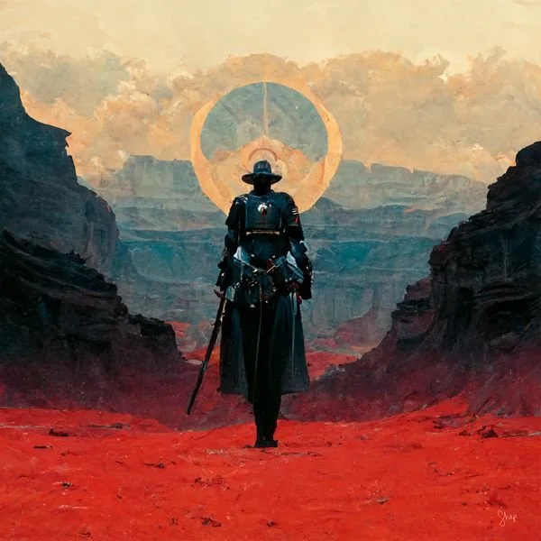 And an honorable mention for an NFT collection I’m trickling out featuring work generated by Midjourney that I then retouch and improve in Photoshop – Man In Black